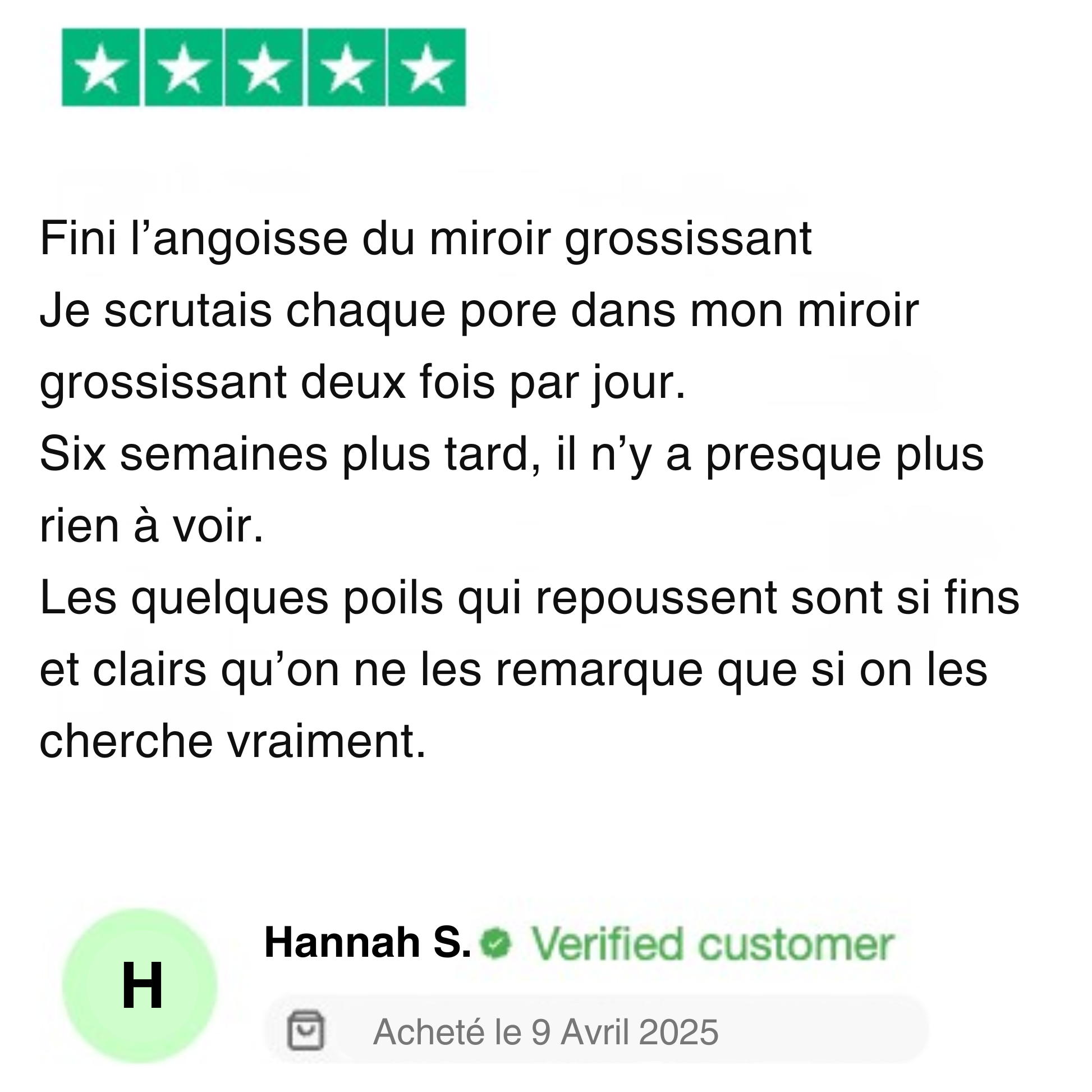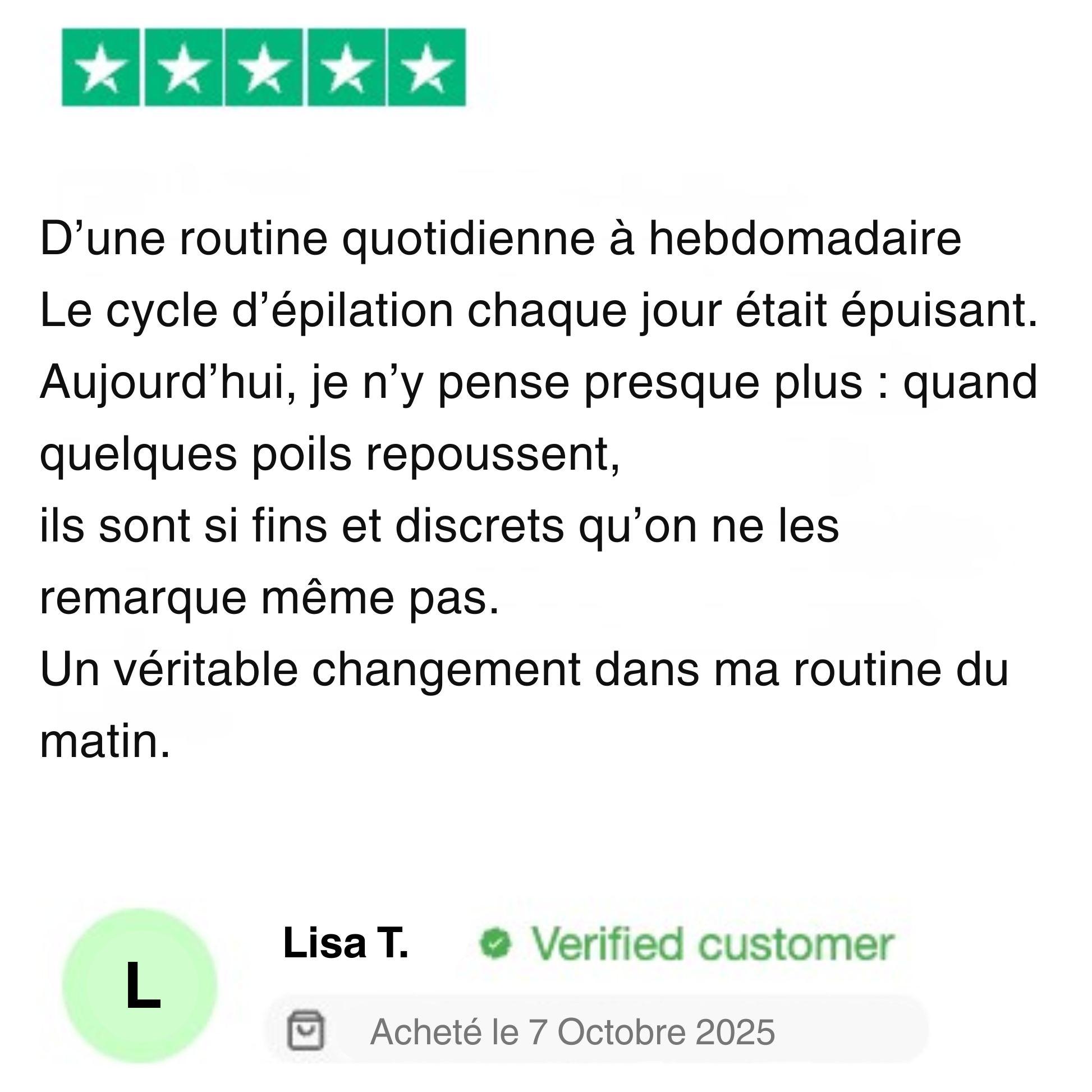 La plupart des utilisatrices remarquent une repousse plus lente et plus fine en 1 à 2 semaines d’utilisation régulière.
