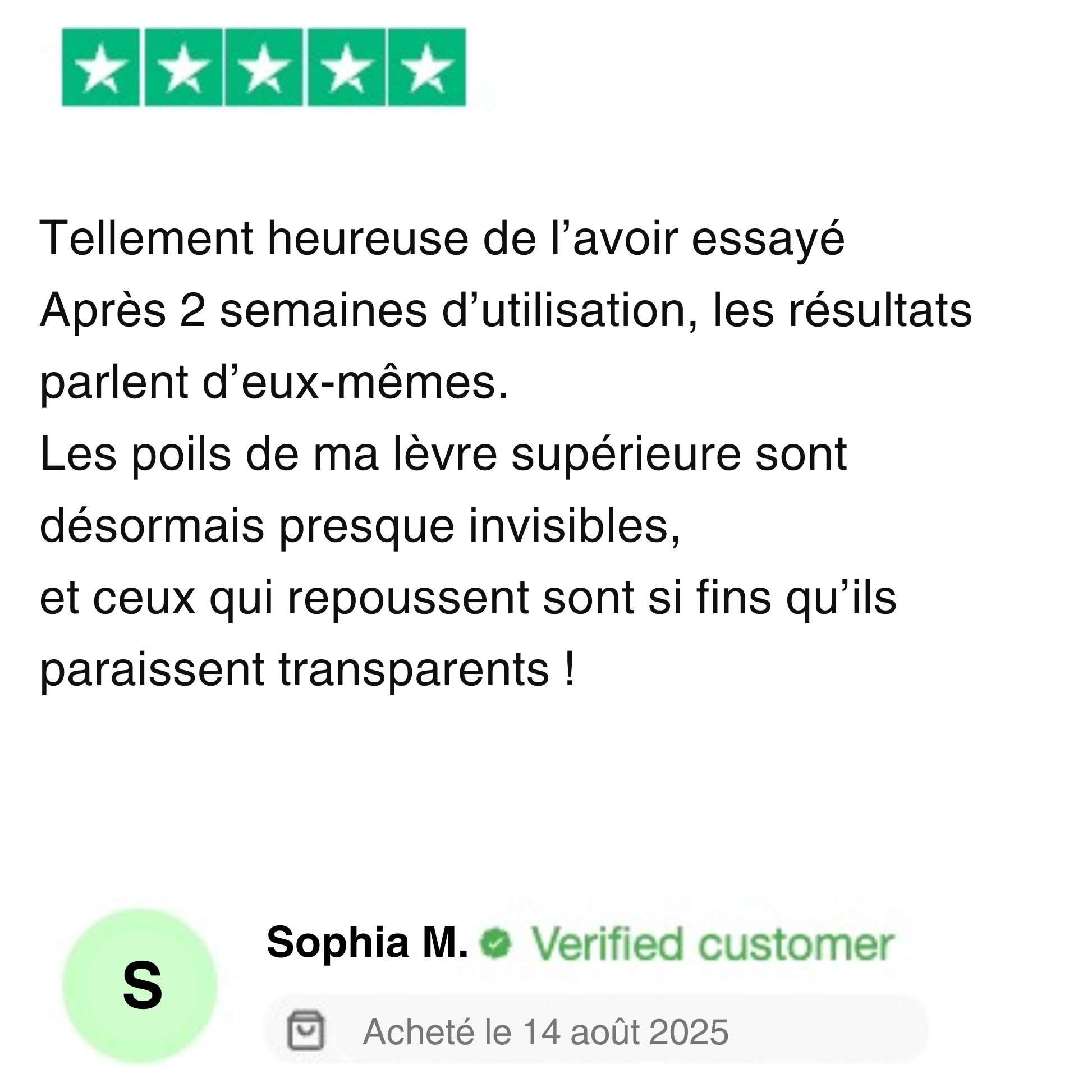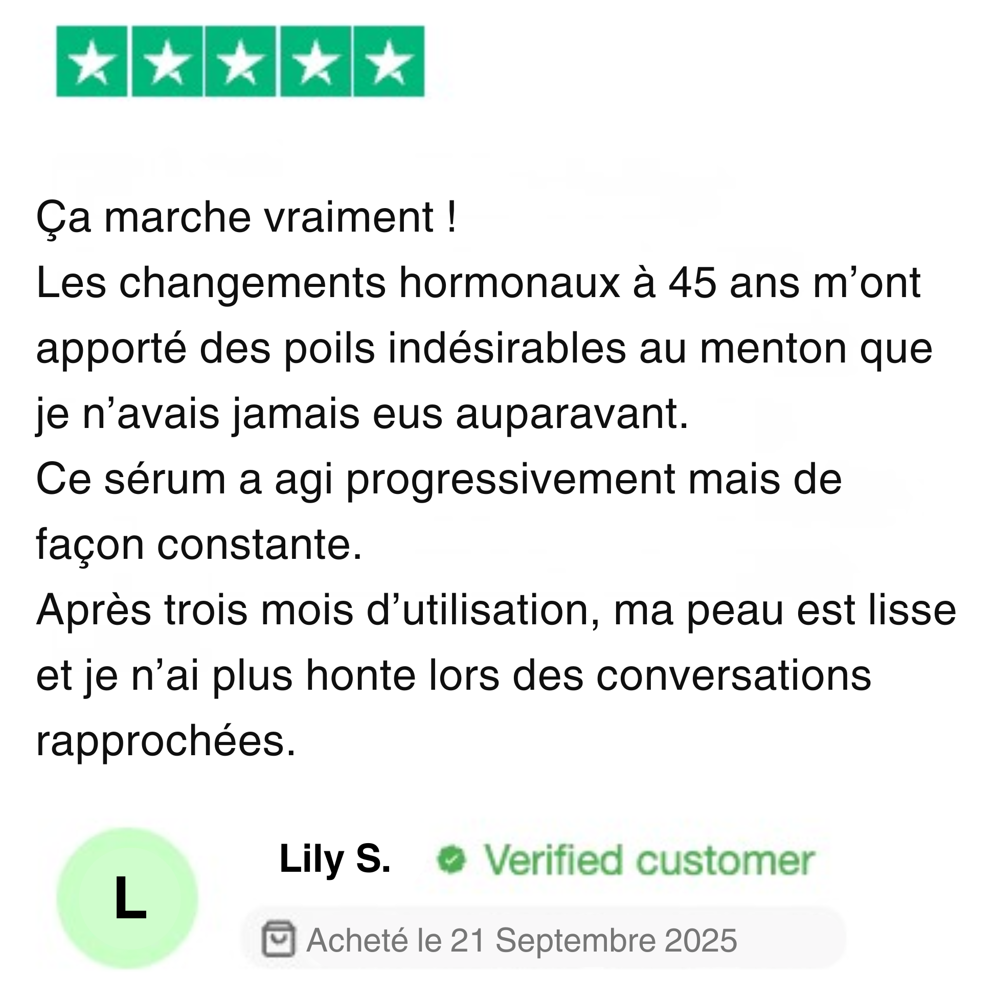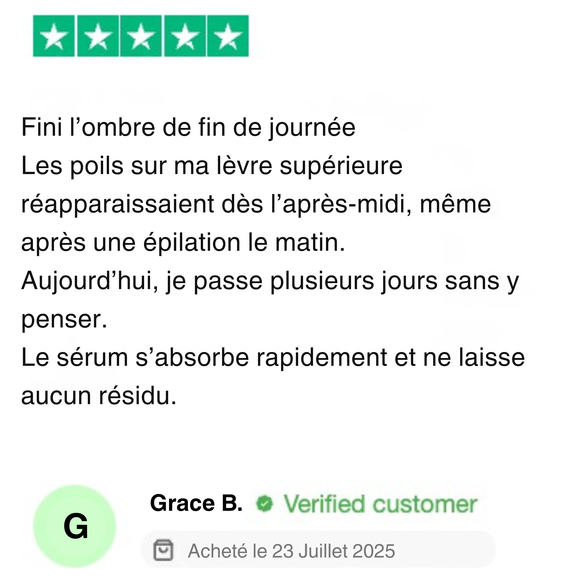 Découvrez ce que plus de 55 000 clientes ont déjà expérimenté — un sérum qui rend les poils indésirables progressivement plus fins, jusqu’à les rendre presque invisibles.