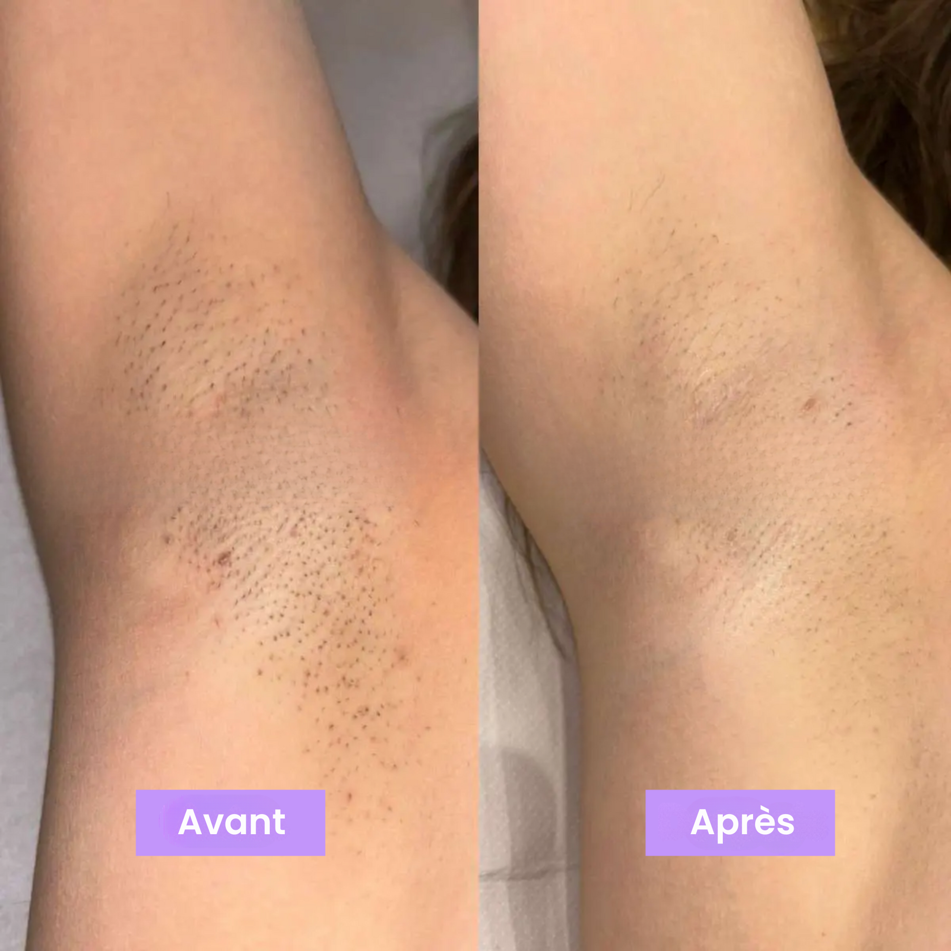La plupart des utilisatrices remarquent une repousse plus lente et plus fine en 1 à 2 semaines d’utilisation régulière.