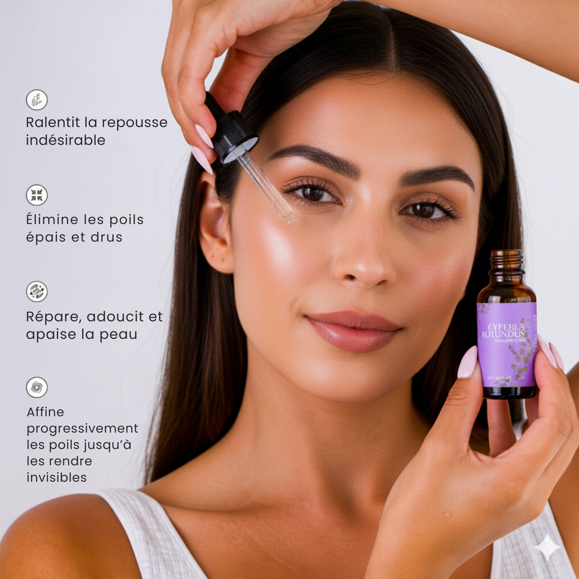 Note moyenne 4.7 sur 5 basée sur plus de 4 700 avisL’extrait de Cyperus Rotundus s’absorbe en profondeur dans la peau, atteignant directement les follicules pileux à la racine — là où commence réellement la croissance du poil.